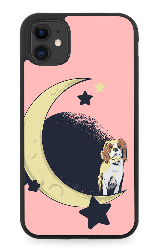 Dog On The Moon Rubber Phone Case Dogs Puppy Half Shape Moons Curve Night M254