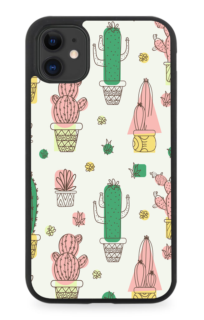 Colourful Retro Cactus Art Design Rubber Phone Case Plant Plants Pink Green M615C