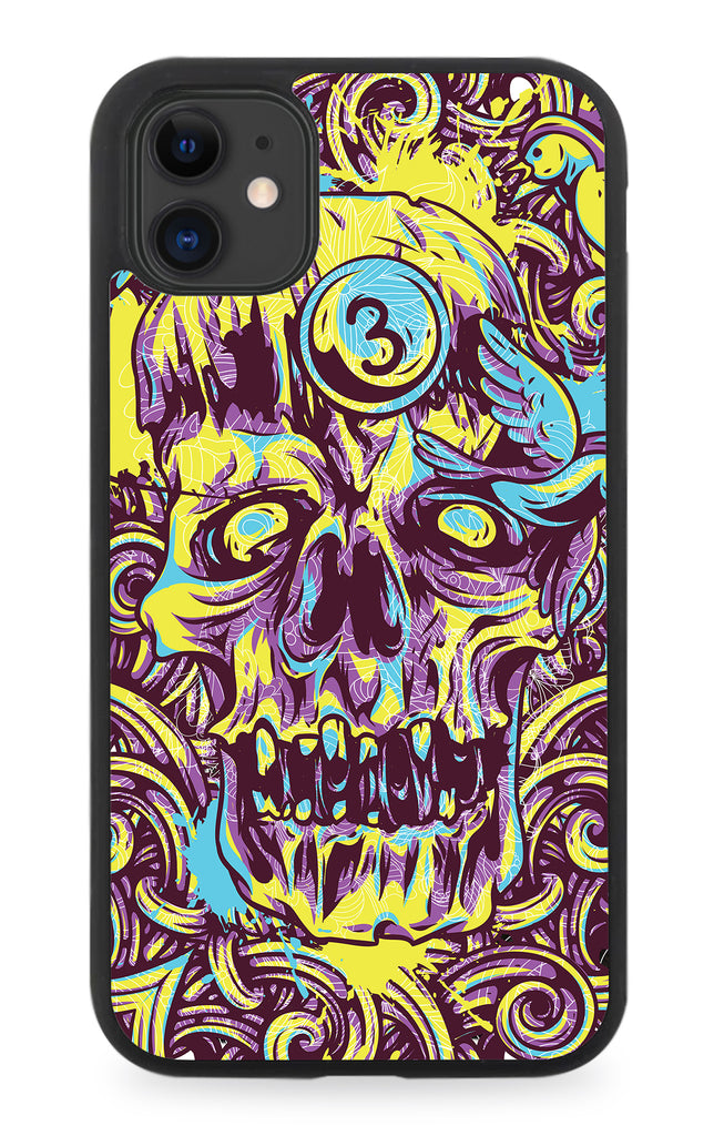 Yellow Scary Skull Face Rubber Phone Case Horror Painting Design Photo E325