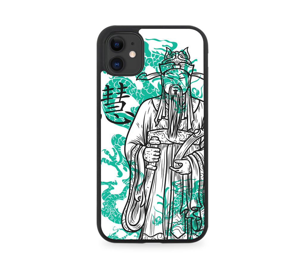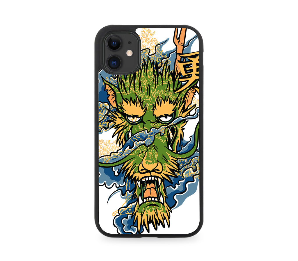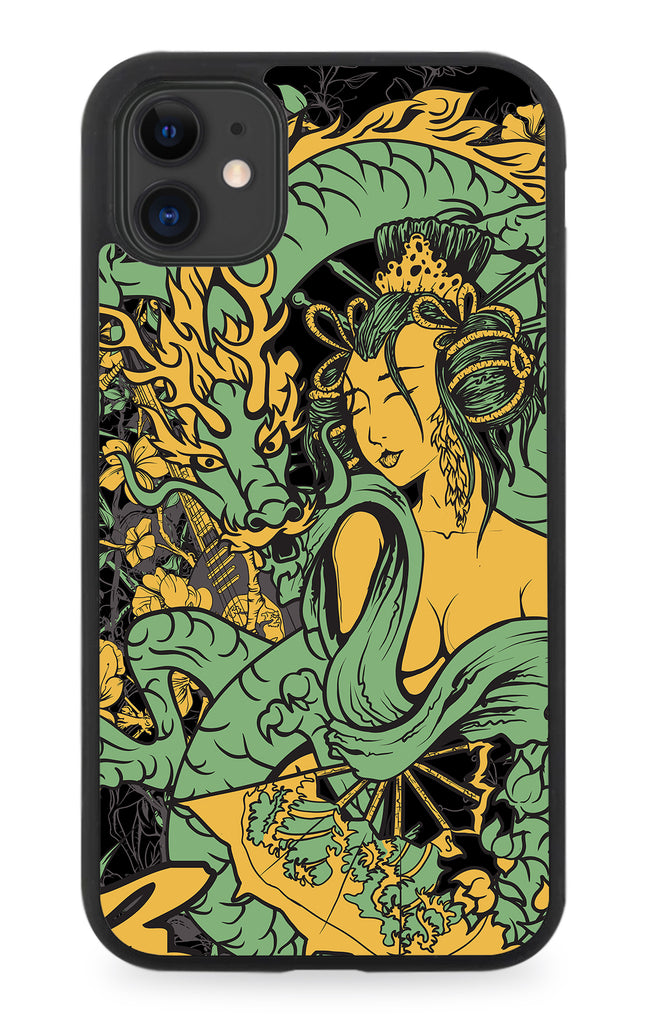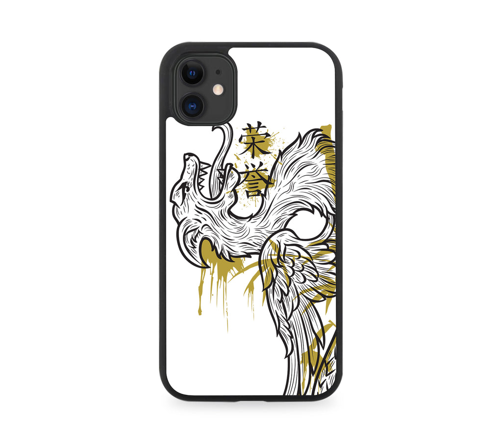 Japanese Building Drawing Print Rubber Phone Case Dragon Oriental Logo E352