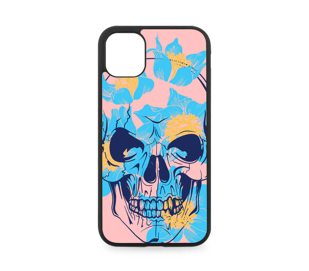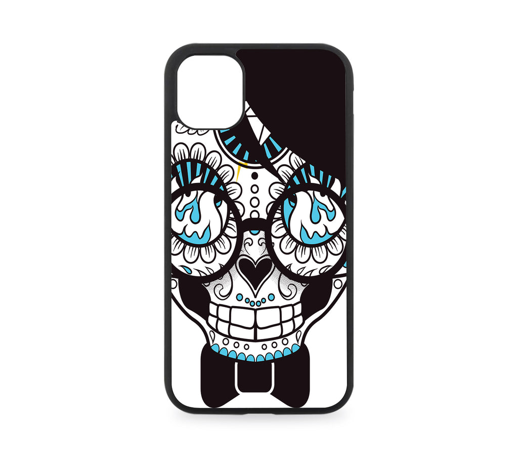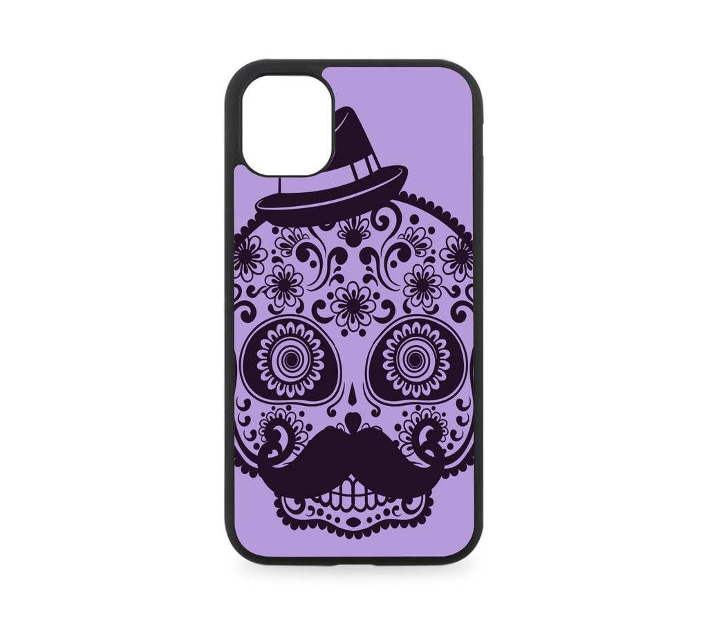 Floral Sugar Skull Rubber Phone Case Moustache Curly Fedora Hat Design E263