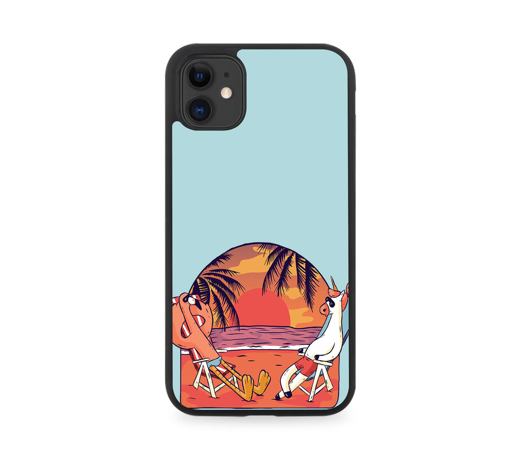 Unicorn and Flamingo Sunbathing Rubber Phone Case Sunbath Sunburnt Holiday J403