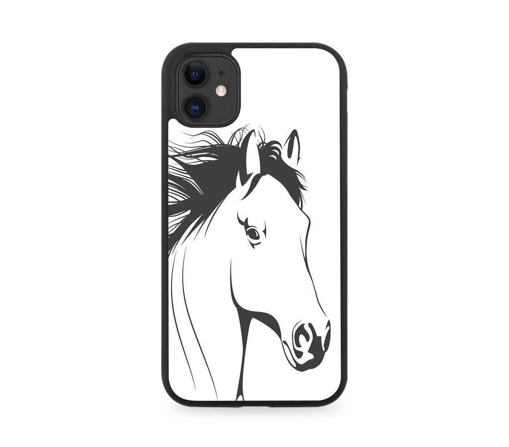 Simplistic Black and White Horse Face Outline Shape Rubber Phone Case Head J530
