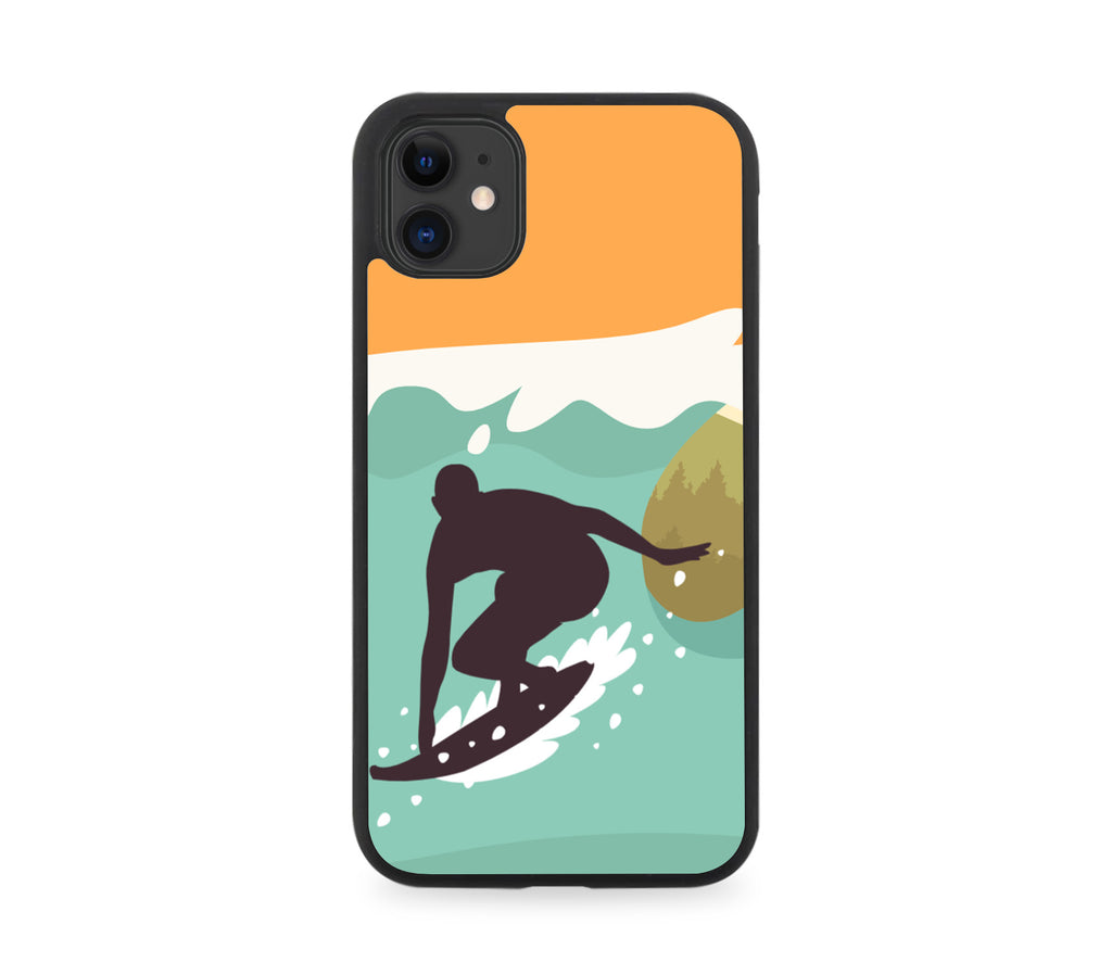 Silhouette Surfing Large Waves Rubber Phone Case Big Wave Surfer Dude Mens K316
