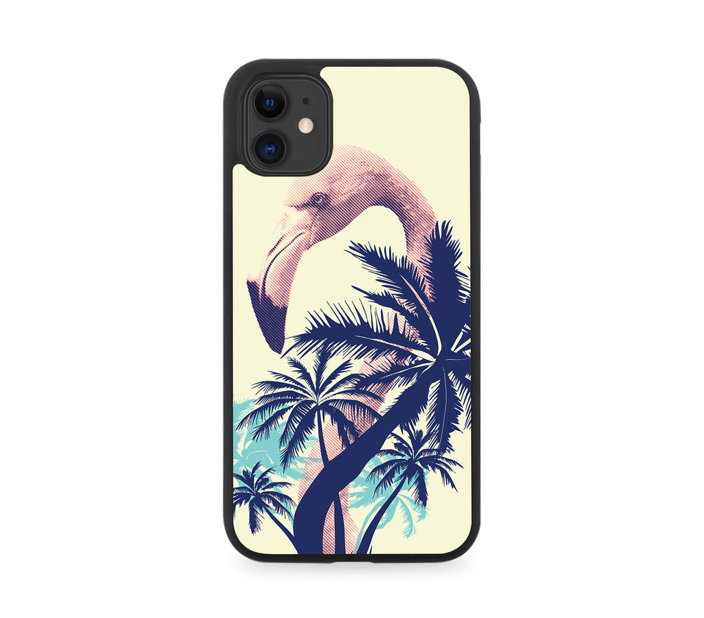 Stylish Flamingo and Palm Tree Silhouette Rubber Phone Case Artistic Neon J401