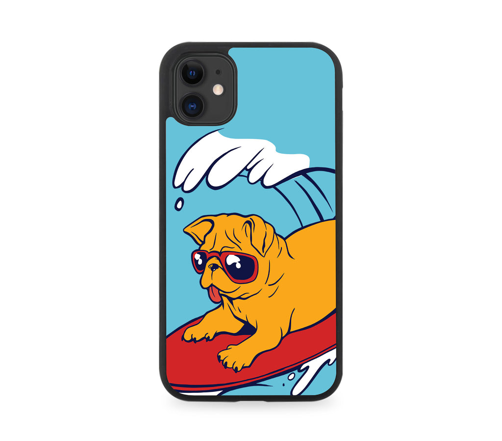 Surfing Pug Rubber Phone Case Dog Surfboard Surf Surfer Pugs Puppy Waves K153