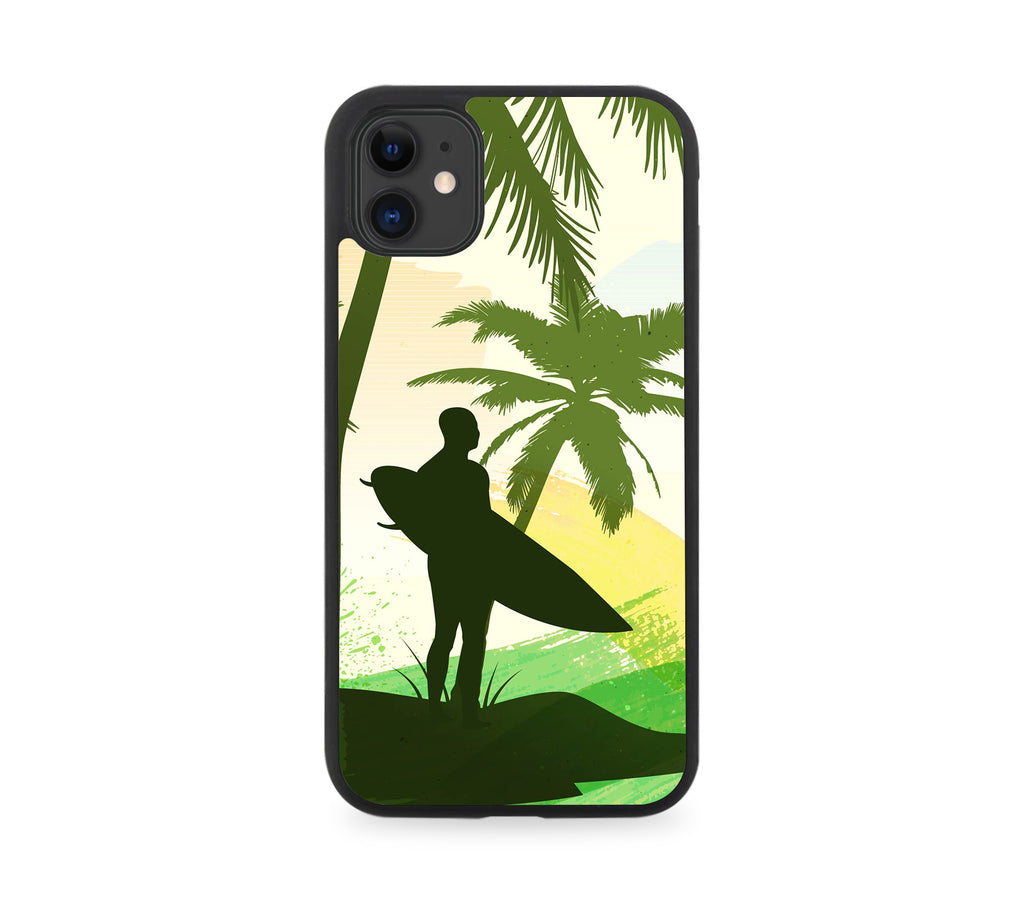 Stylish Surfer Dude Silhouette Outline Rubber Phone Case Palm Trees Picture K318