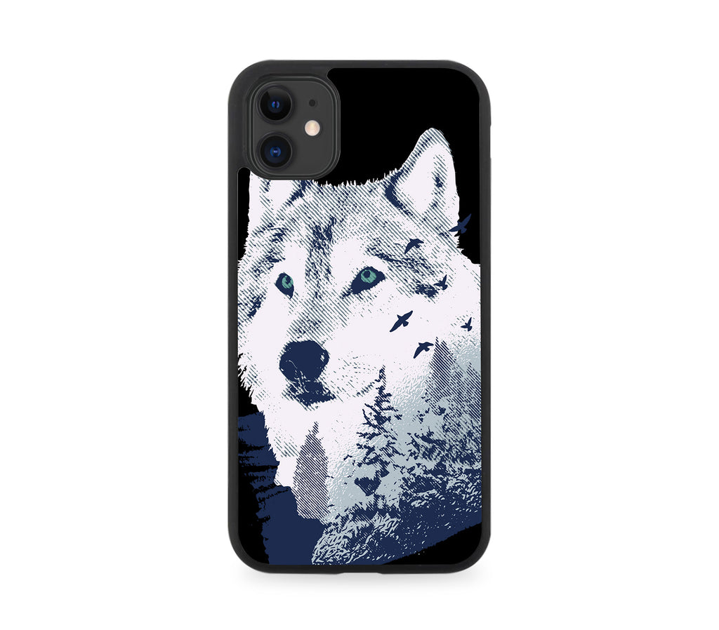 Stylish Wolf and Birds In The Forrest Rubber Phone Case Woods Trees Wolves K464