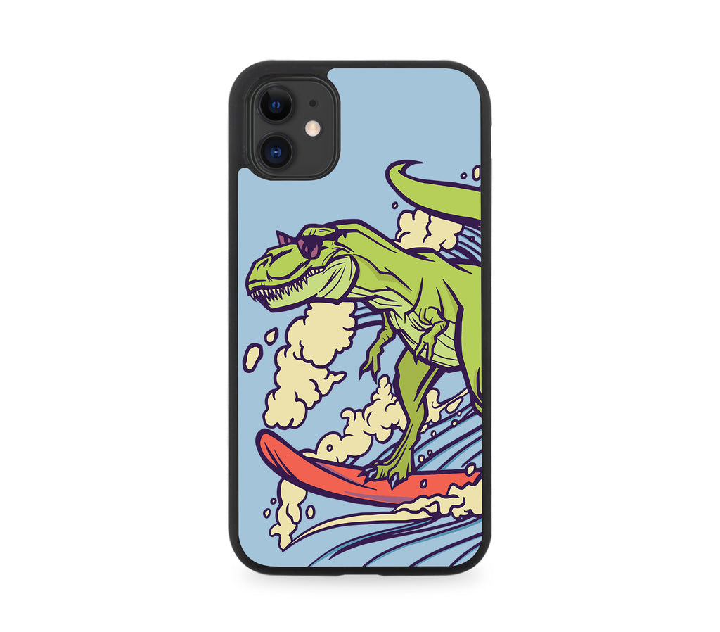 Surfing Dinosaur On Waves Rubber Phone Case Surf Surfer Surfboard Dinosaurs J212