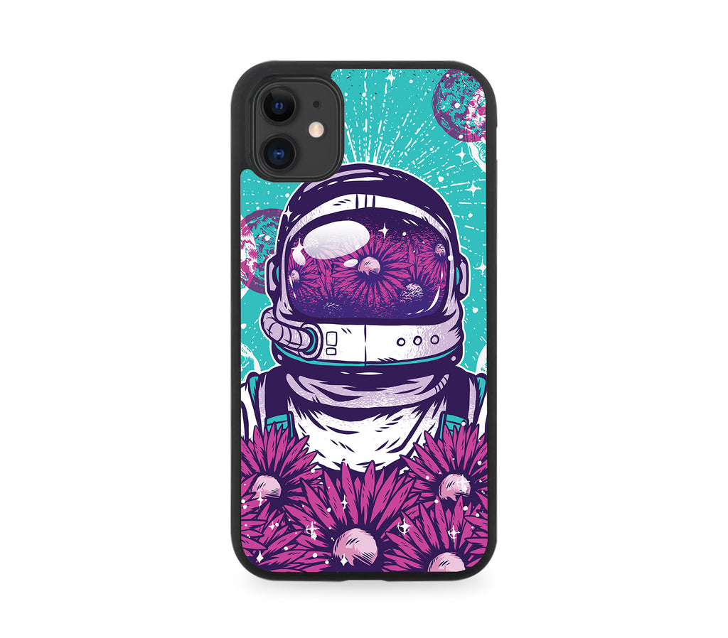 Spaced Out Astronaught Rubber Phone Case Helmet Flowers Daisies Floral K079