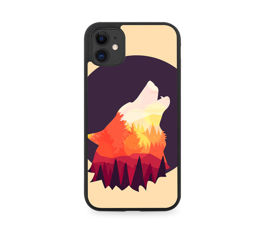 Orange Sunset Forrest Skyline Wolf Head Howling Rubber Phone Case Wolves K449