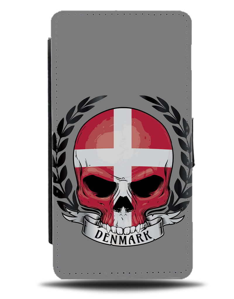 Danish Skull Flip Wallet Case Flag Flags Denmark Skeleton Head Face Red Boy DK02 - Flip Wallet Cases