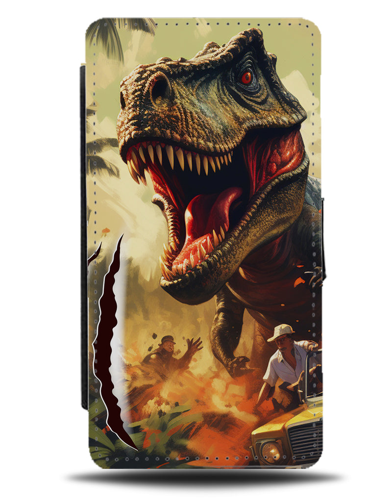 Dinosaur Attack In Safari Park Flip Wallet Case Dinosaurs Jurassic T Rex DN29 - Flip Wallet Cases