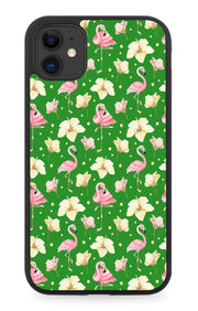 Green Flamingos Pattern Rubber Phone Case Flamingo Shapes Pink Lilies Floral AA21 - Rubber Phone Case