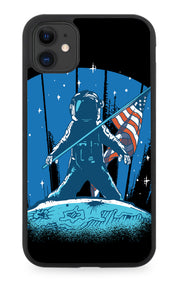 American Astronaught Flag On Moon Rubber Phone Case USA America Landing Land M077 - Rubber Phone Case