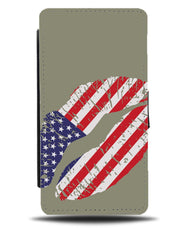American Flag Flip Wallet Case Stars and Stripes Lipstick Kiss Mark Lips AN59 - Flip Wallet Cases