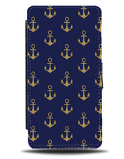 Blue Anchors Pattern Flip Wallet Phone Case Anchor Golden Gold Sailing Design Q487B - Flip Wallet Cases