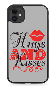 Grey and Red Hugs and Kisses Rubber Phone Case XOXO Hug Kiss Lips Marks Q682 - Rubber Phone Case