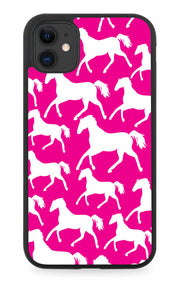 Hot Pink and White Horse Silhouettes Rubber Phone Case Cover Horses Shape Girl G324 - Rubber Phone Case