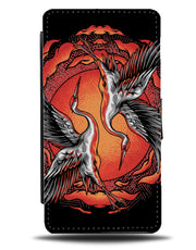 Japanese Fighting Cranes Flip Wallet Phone Case Crane Bird Japan Style Look Theme Q788 - Flip Wallet Cases