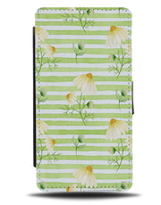 Lime Green and White Striped Daisy Flowers Flip Wallet Phone Case Flowers Petal Q462F - Flip Wallet Cases