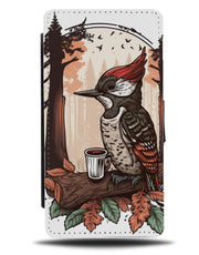 Morning Early Bird With Coffee Flip Wallet Phone Case Birds Wodpecker Coffees Cup BJ92 - Flip Wallet Cases